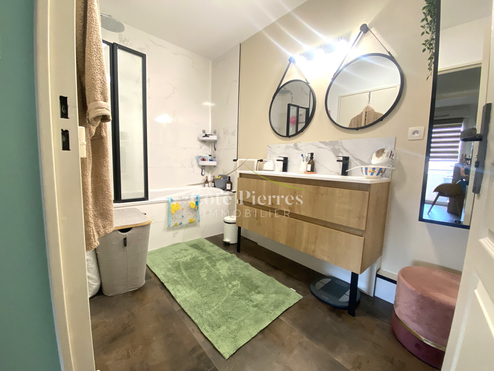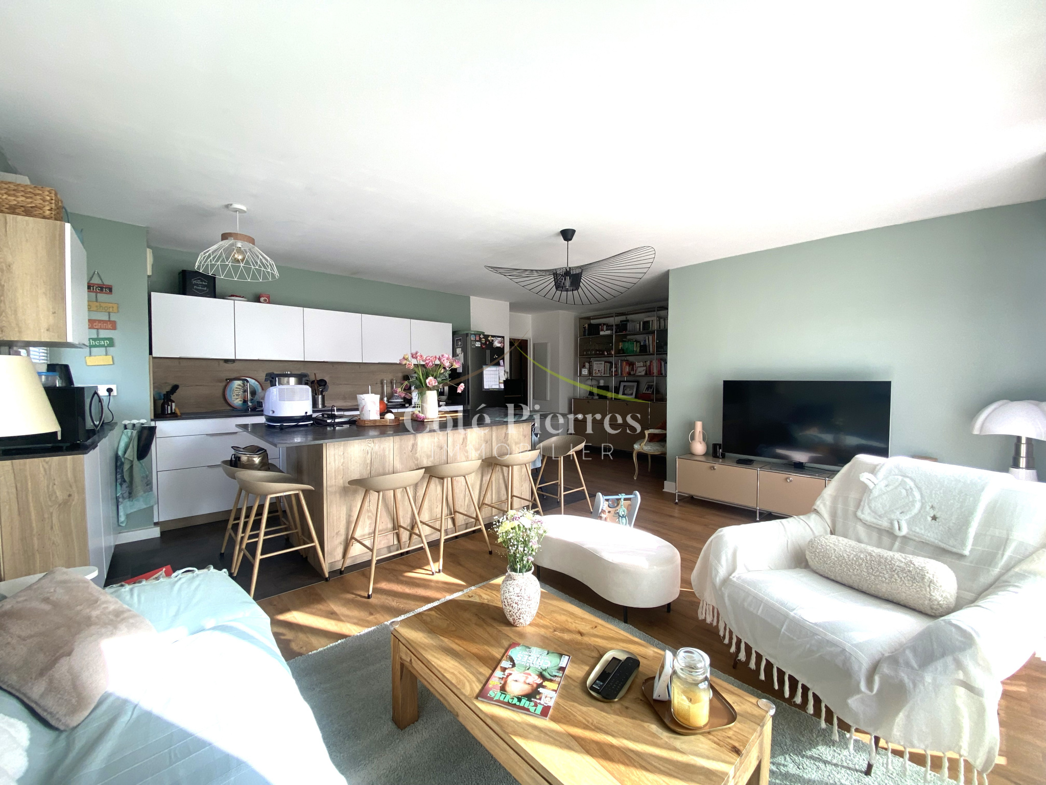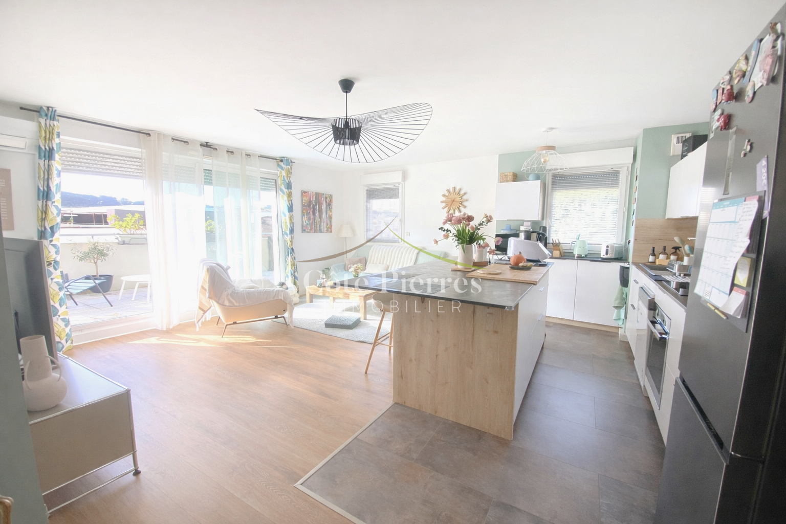 L' Agence Côté Pierres Immobilier vous propose un appartement de Type 4 entiérement rénové et décoré avec beausoup de soins, couleurs et matériaux à la tendance actuelle.