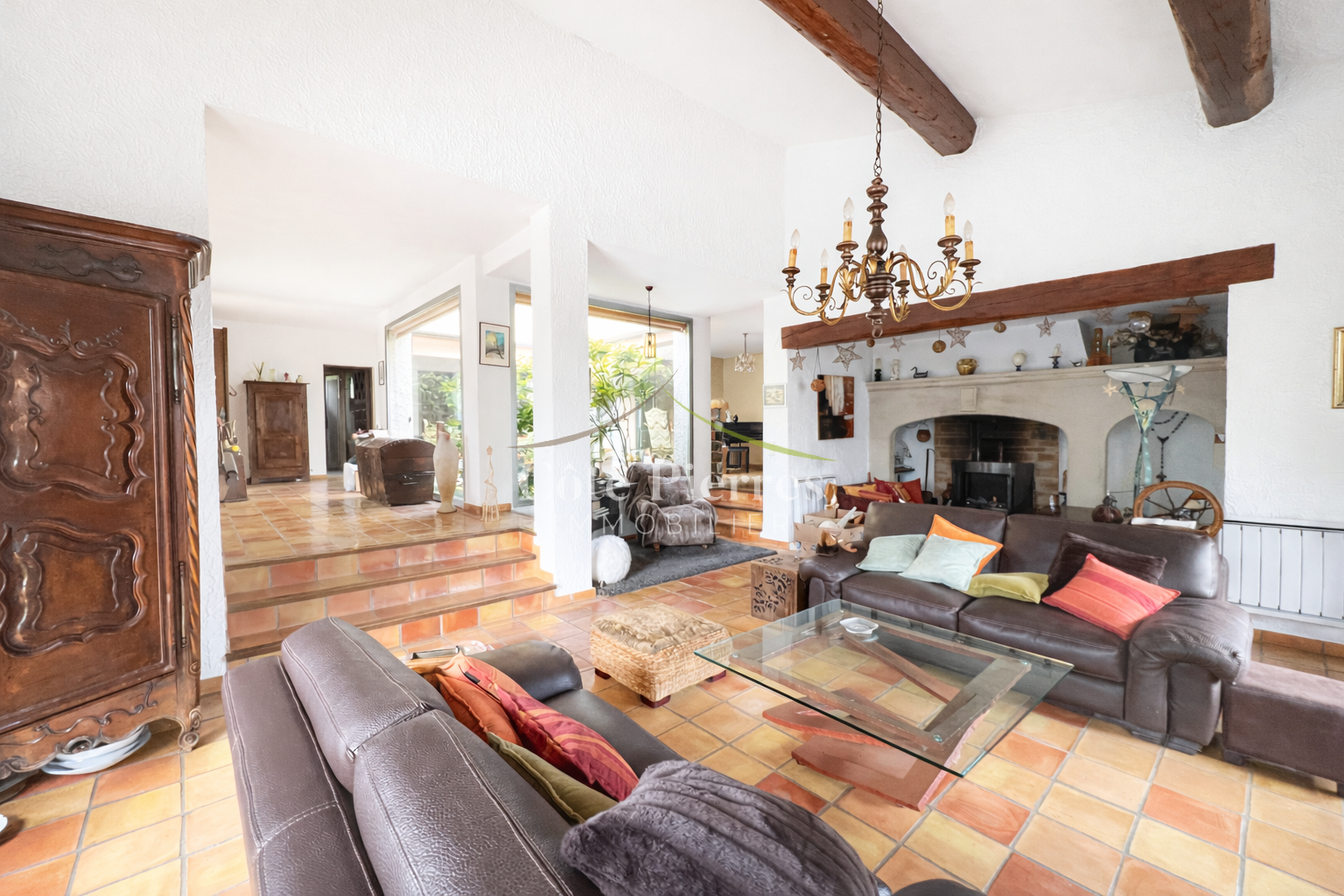 grand séjour avec cheminée, 3 chambres, salle de bains, salle d'eau, 2 wc, grand garage, bref! vous l'aurez compris il ne manque rien.