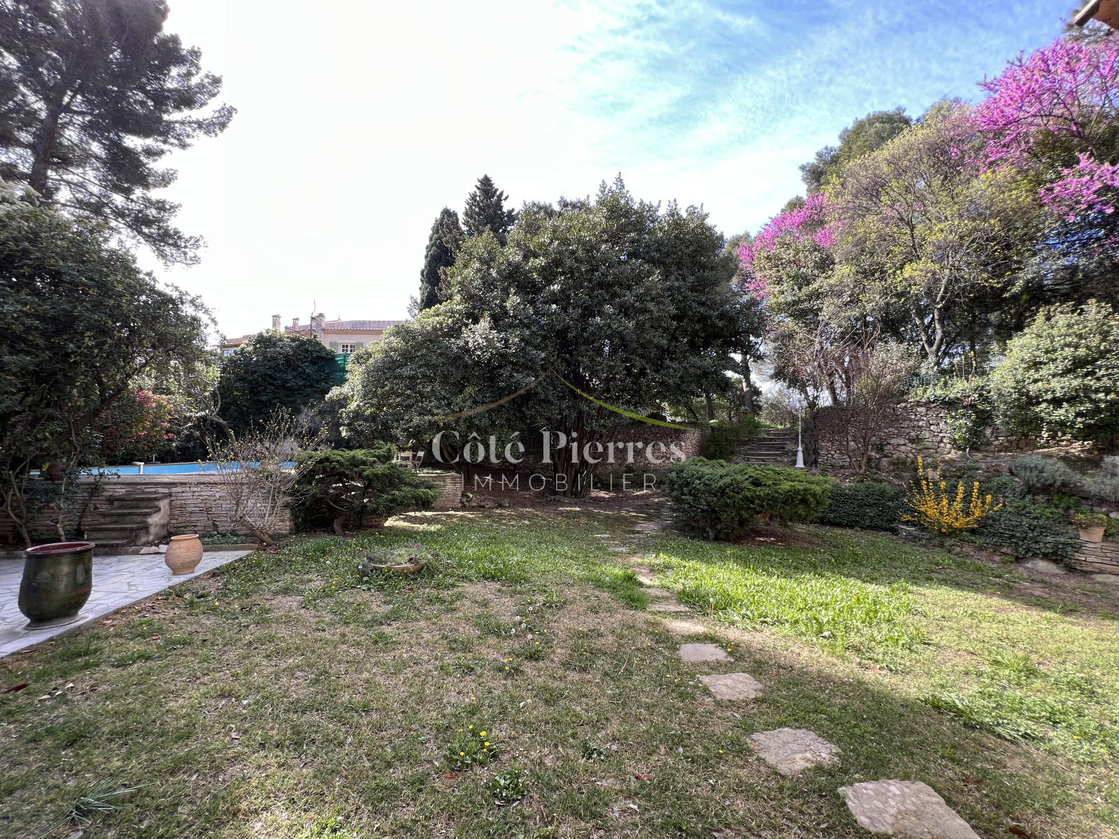 Les pièces de vie ouvrent sur un très joli jardin, arboré et fleuri avec piscine.