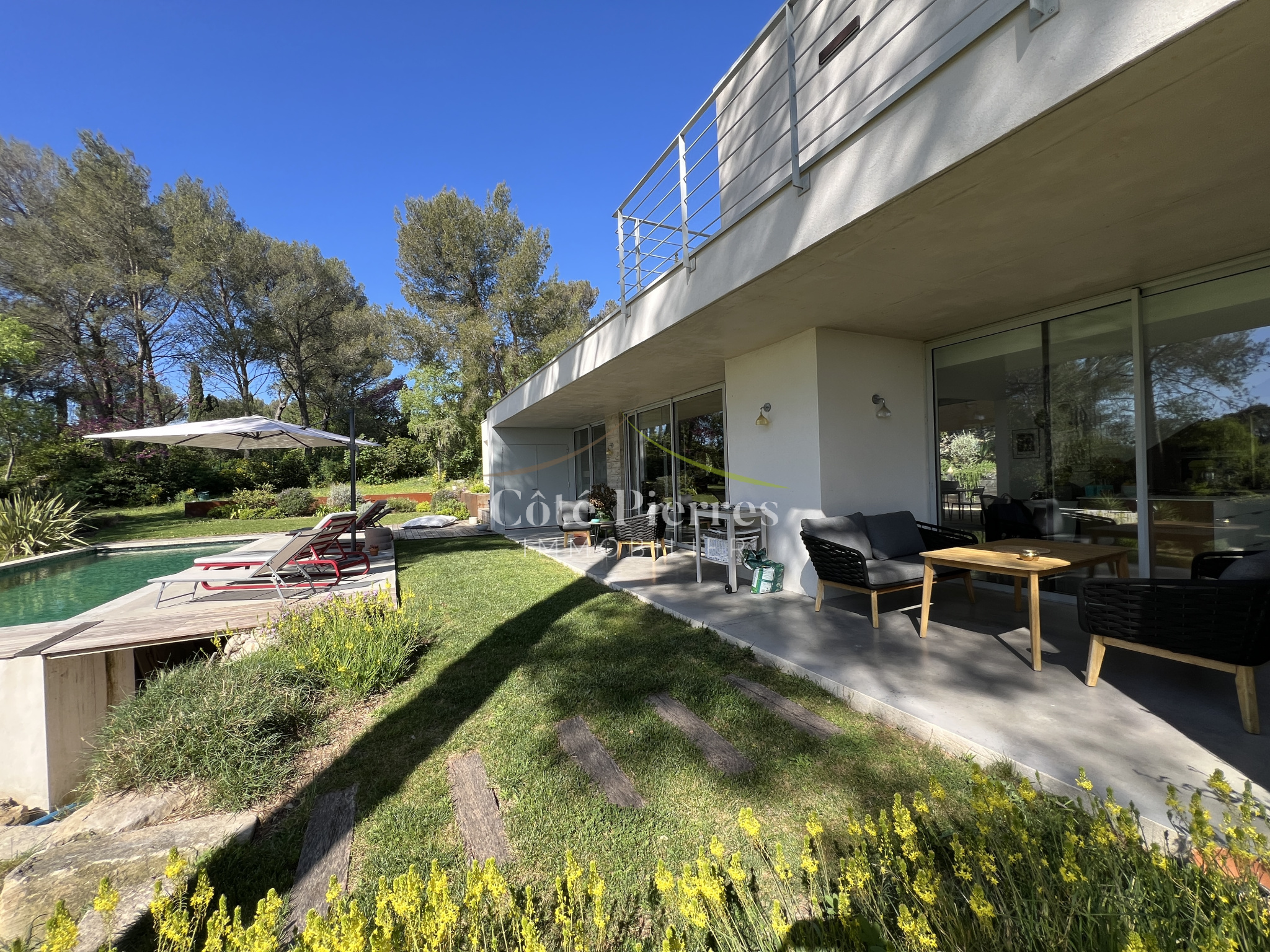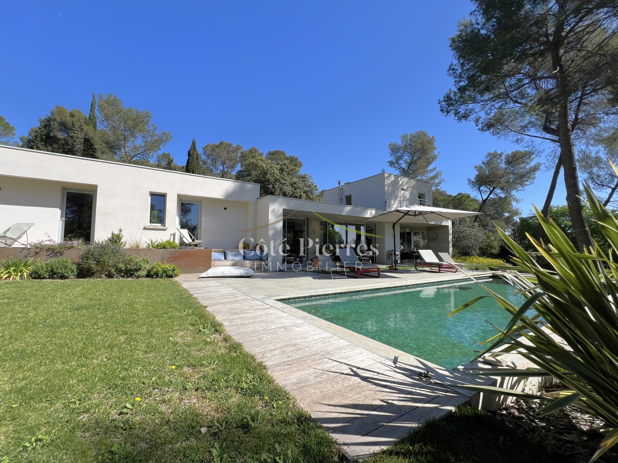 L’Agence Côté Pierres Immobilier vous propose cette magnifique villa contemporaine, signée par Anthony PASCUAL architecte Nîmois , offrant des prestations rares et un emplacement privilégié.